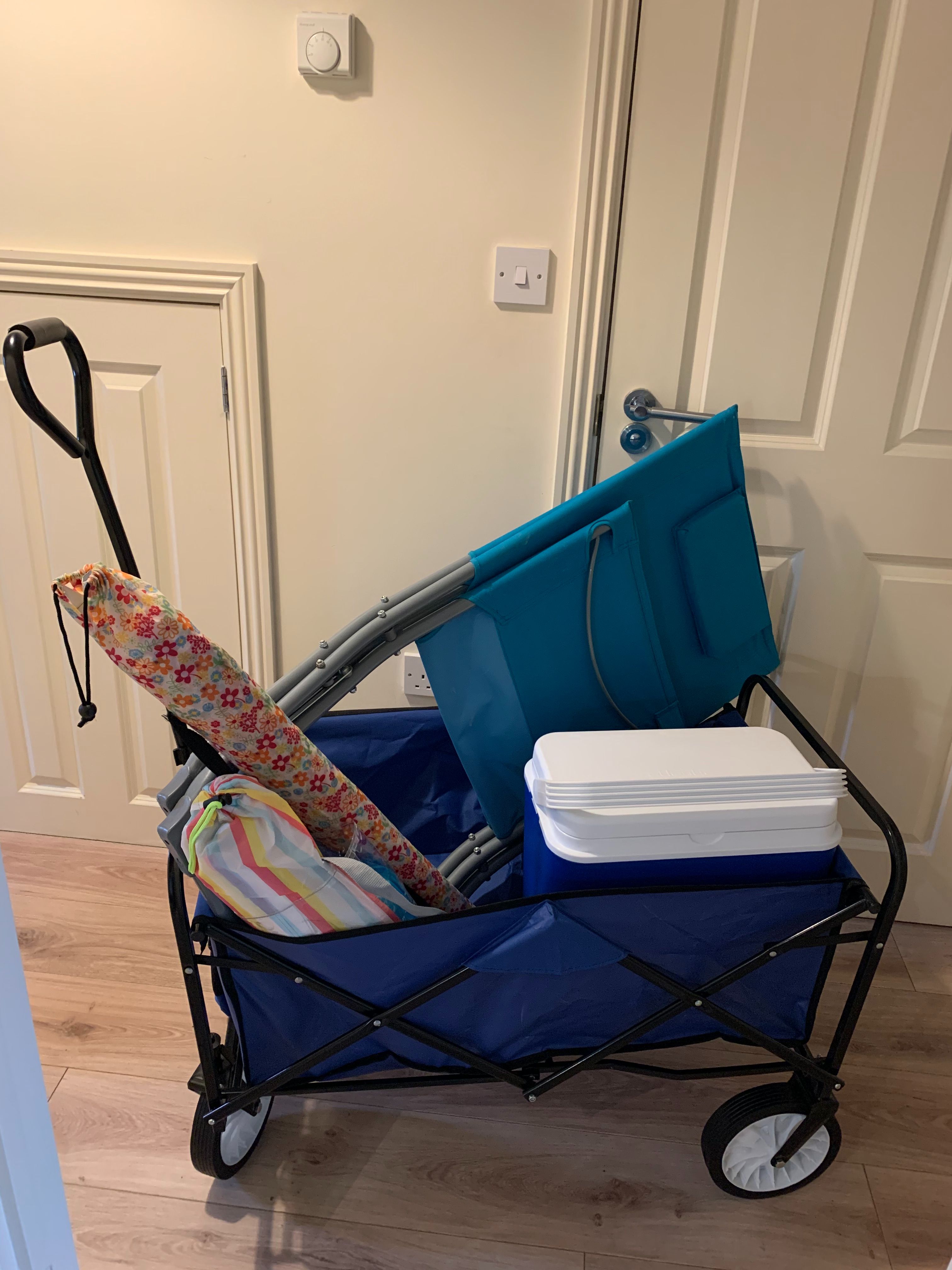Downstairs off the hall is an under stairs cupboard which stores a variety of beach equipment including a beach trolley, tent, ground sheet and wind break.