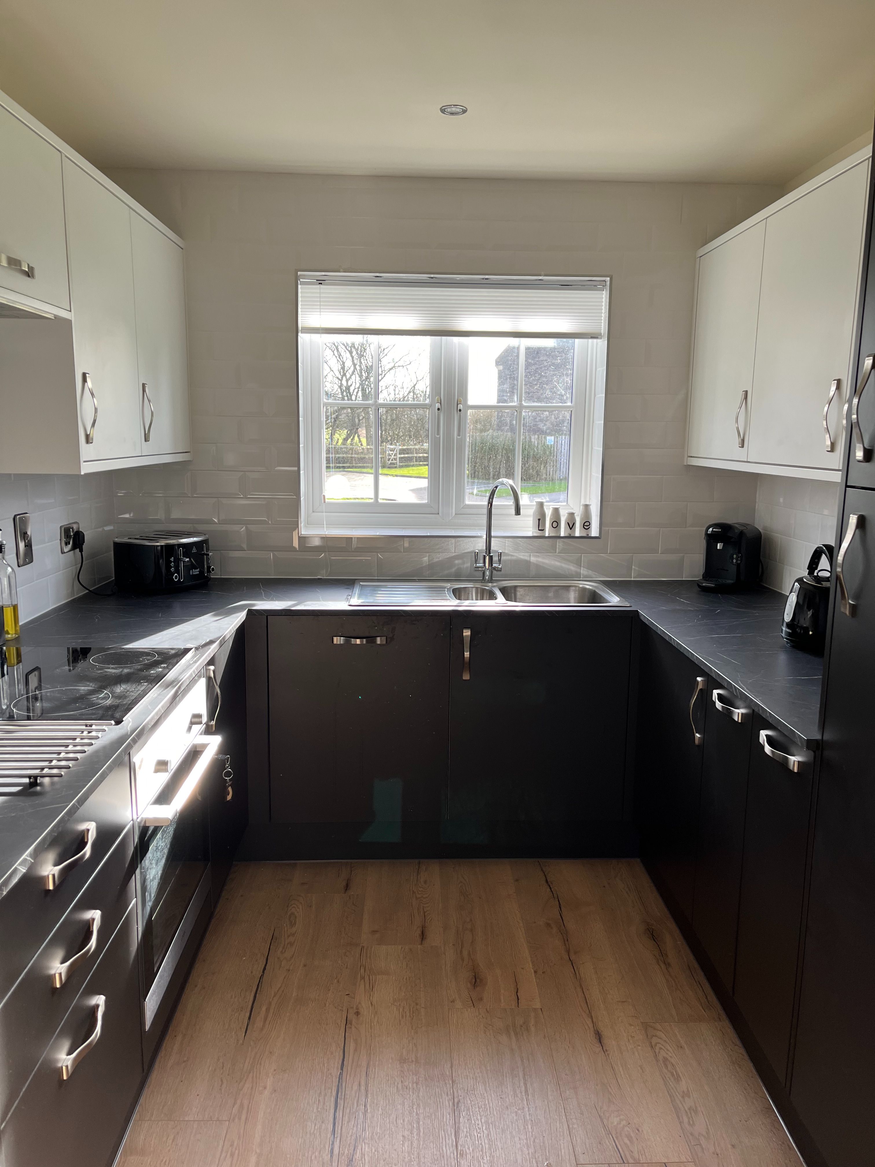 The comfortable L shaped living area includes sofa, armchair, TV, books and games, dining table and benches and kitchen area. The kitchen area is fully equipped with quality cutlery and crockery etc. There is a fridge, dishwasher, washing machine, oven, hob and microwave. The cottage has gas central heating.